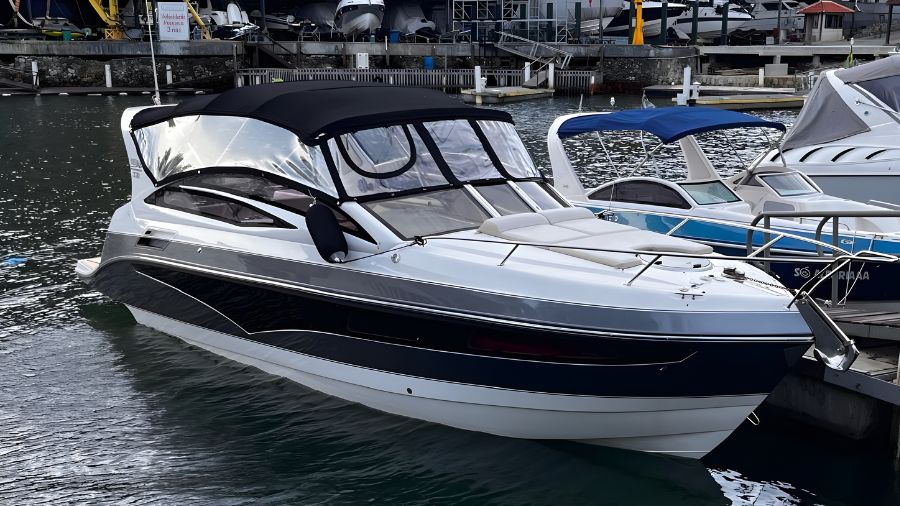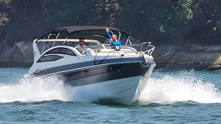 Equipada com MerCruiser 6.2 – 300 HP, aproximadamente 380 horas de uso. Muflas substituídas em 11/2025, garantindo mais tranquilidade e manutenção atualizada.