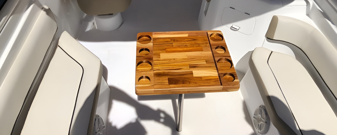 – Mesa em fibra de vidro com porta copos; (Mesa de madeira opcional)