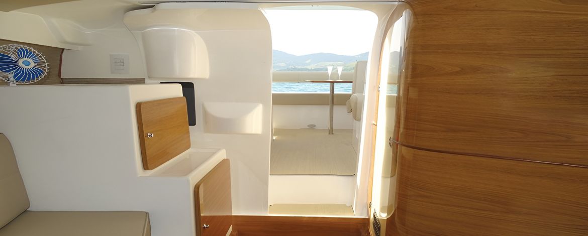 – Casco e convés com pintura personalizável, revestida com verniz poliuretano 02 componentes;