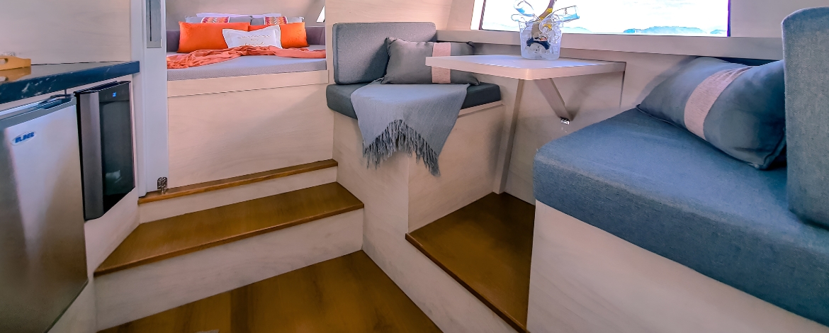 Banco de piloto e copiloto com assentos altos e rebatíveis que proporcionam 3 opções de posições para navegar;