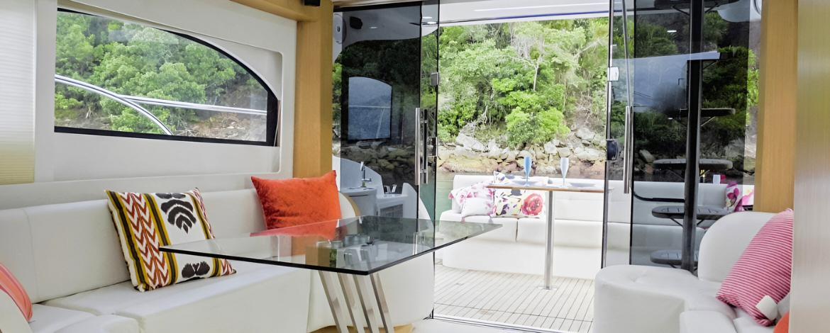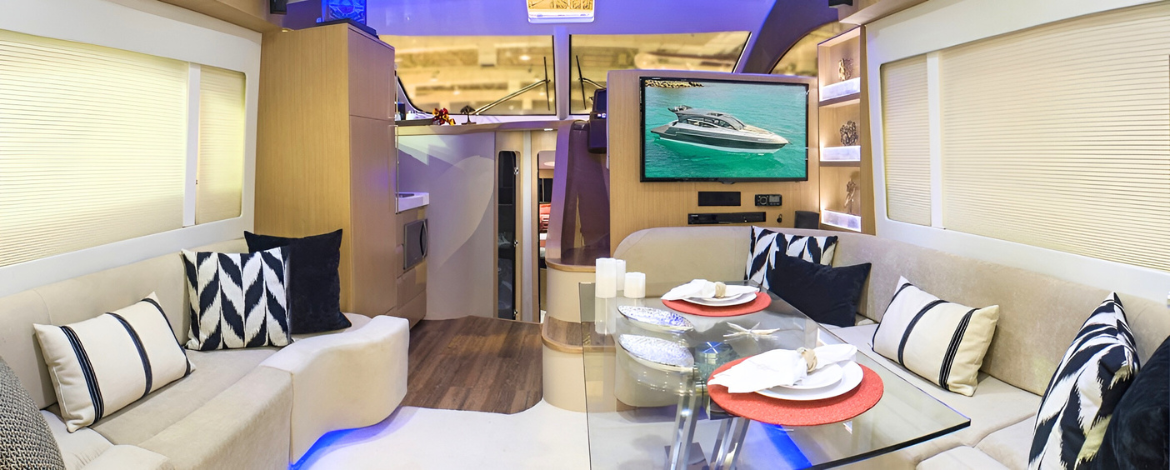 Possui ainda sofá em ‘U’ para seis pessoas e solário para dois passageiros.